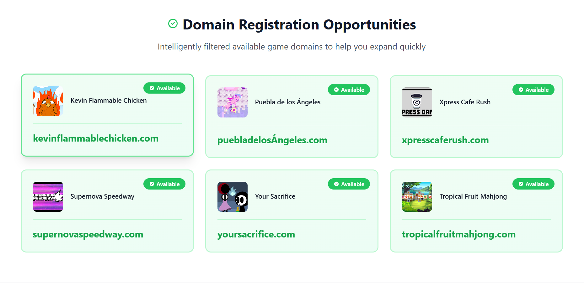 域名检测与推荐:辅助开发者发现可注册的游戏相关域名