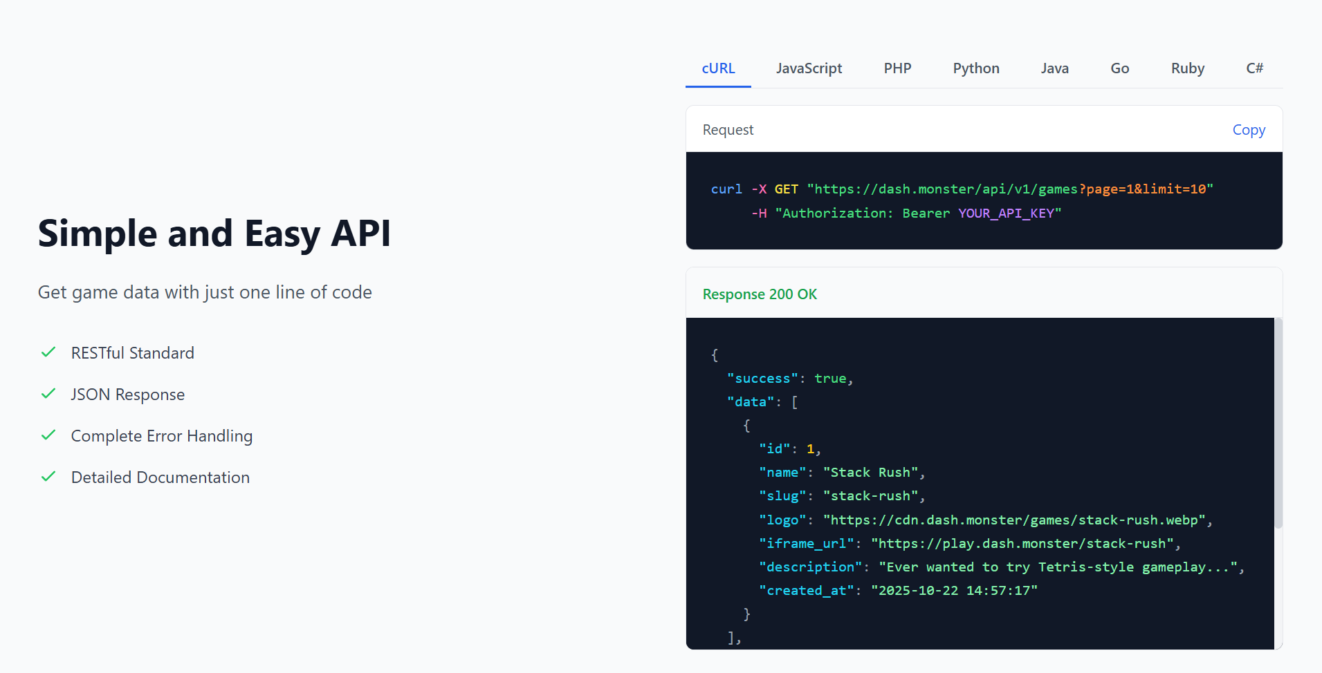 最近我上线了一个新项目 Dash.monster,这是一个专为游戏开发者和数据平台打造的 智能 API 与资源管理系统。
