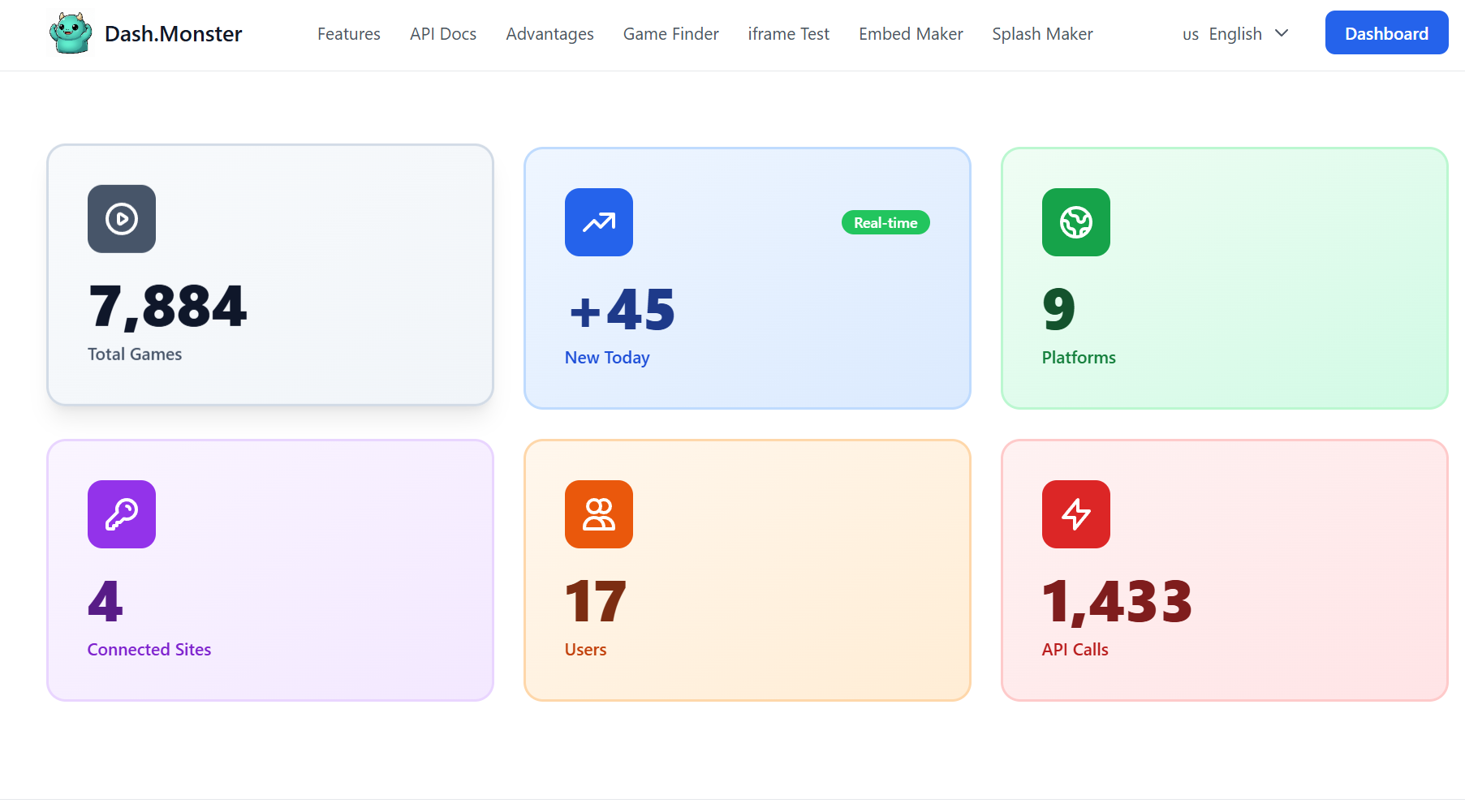 做这个项目的初衷很简单——很多游戏开发、聚合站点或者数据类项目都面临同一个问题:资源分散、API 接口混乱、更新滞后。Dash.monster 想要解决的,就是自动化收集、智能清洗、统一分发这一整套流程。