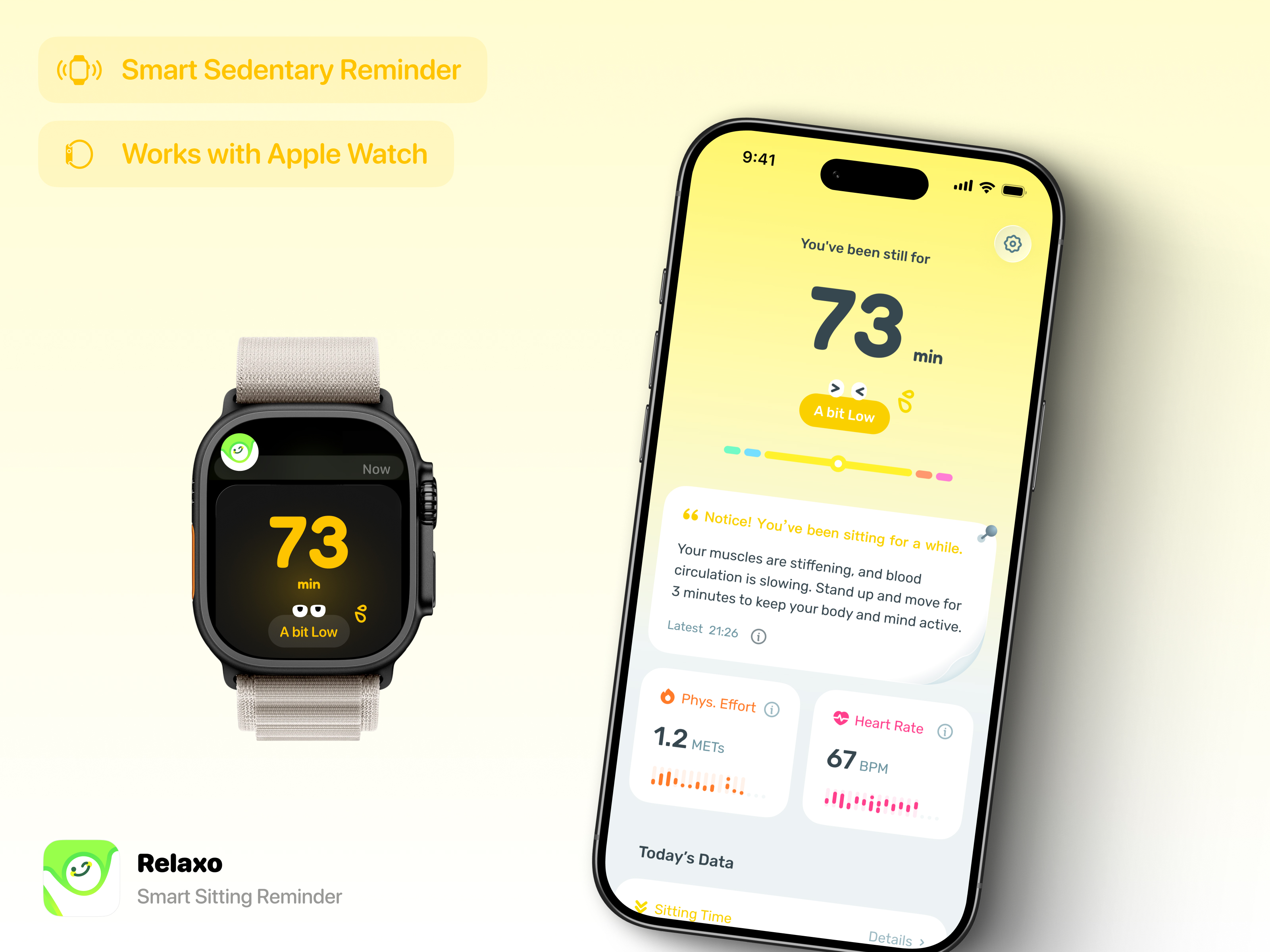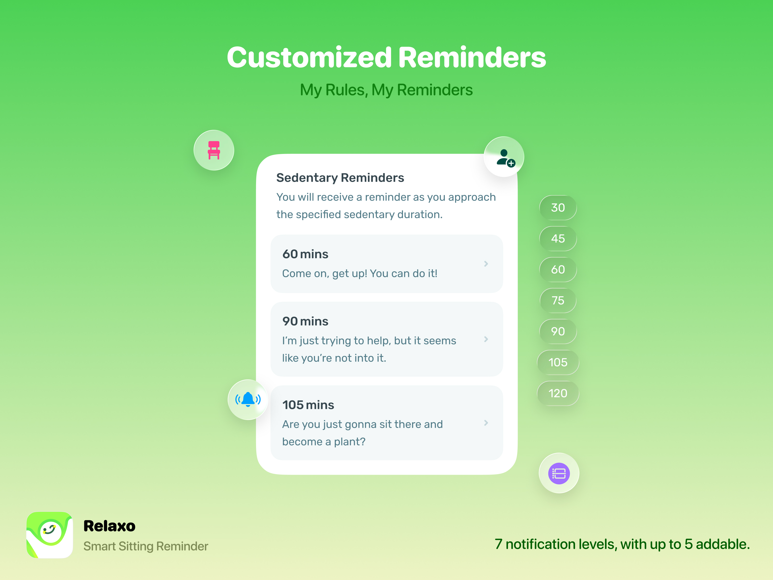 Relaxo 已经在 App Store 上线啦! 上线第一个月就已经有 1,500 次下载。 如果你觉得 Apple Watch 的站立提醒太容易错过,不够灵敏,Relaxo 可能会帮到你:
