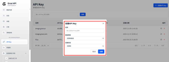 1.获取 APIKey: Grsai 控制台设置 ApiKey( grsai.com/zh/dashboard/api-keys ) com 域名访问需要魔法,没有改成 ai),复制 ApiKey