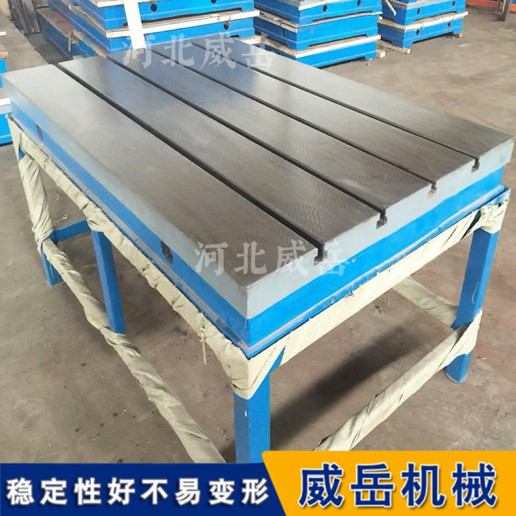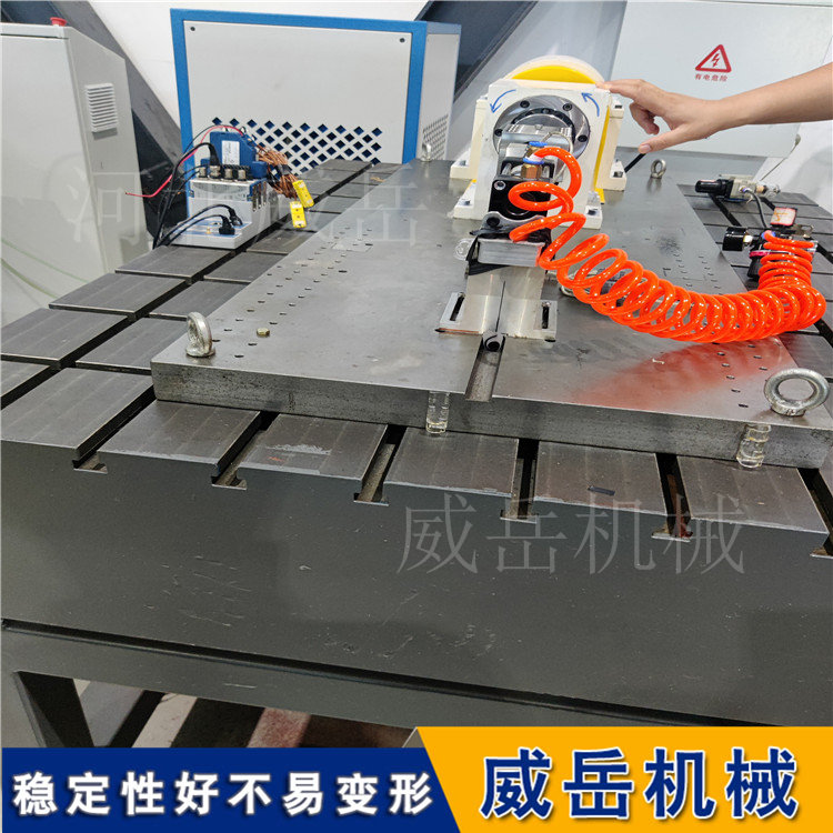 铸铁焊接平台,特别是带 T 型槽的这类平台。它是一种在铆焊、装配、检验等工作中都非常核心的基础工艺装备。 简单来说,它的核心作用就是提供一个非常稳定、平整的工作台面,并通过其标志性的 T 型槽,灵活地固定住各种形状的工件,从而保证焊接或装配的精度。 铸铁焊接平台核心构成与材质 这类平台的主体通常采用高强度灰口铸铁铸造,例如 HT200 或 HT300。选择铸铁是因为它具有良好的减震性和耐磨性,能够承受焊接过程中的敲击和高温。为了保证平台在长期使用中精度稳定、不易变形,一个非常关键的工艺环节叫做 “时效处理”。优和质的平台会经过两次人工时效(比如 600-700℃的退火处理)和漫长的自然时效,以此来彻和底消除铸铁内部的内应力。比较终,工作面的硬度一般会达到 HB170-240,确保其耐磨耐用。 T 型槽的功能 T 型槽是这类平台区别于普通平板的比较主要特征。这些按照标准间距和尺寸加工在平台表面的槽,主要用途是固定工件。通过搭配 T 型螺栓、压板、夹具等附件,工人可以快速、牢固地将各种不规则形状的工件锁紧在平台的任意位置,有效防止焊接过程中因工件移位而产生的偏差。可以说,T 型槽赋予了平台相当大的灵活性和通用性。 铸铁焊接平台精度等级与选型建议 根据国家标准,焊接平台通常划分为不同的精度等级,常见的有 0 级、1 级、2 级和 3 级。平面度公差值越小,精度越高。 对于一般的焊接和铆焊工作,由于工艺本身会产生高温和敲击,对平台的精度影响较大,因此通常选用 3 级精度或者经过精刨处理的平台就完全足够了。如果你的平台还需要承担高精度的装配、划线或检验工作,那么就需要考虑 1 级甚至 0 级的更高精度平台。 铸铁焊接平台规格与应用场景 铸铁焊接平台的规格非常丰富,从小型的 200×200 毫米到大型的 4000×10000 毫米都可以制造,常见的规格在 1000×1000 毫米到 3000×6000 毫米之间,并且大多数厂家都支持按需定制。 除了比较常用的焊接和铆焊,它还广泛应用于: 装配与调试:作为钳工调试、装配设备的基础工作平面。 检验与测量:用作精和密测量的基准平面,检查零件的尺寸精度和形位偏差。 划线:在工作面上对工件进行精和确的划线操作。 铸铁焊接平台日常使用与维护 为了确保平台的长寿命和精度保持,日常使用和维护需要注意几点:使用前应清理台面,工件固定要牢固,焊接完成后应及时卸下工件,防止平台因长时间受力而变形。使用完毕后,需要擦净工作面,并涂上一层防锈油,长期不用的话比较好涂上黄油并覆盖纸张保护,避免存放在潮湿或有腐蚀性气体的环境中。只要使用得当,这类平台的使用寿命可以达到 50 年以上。