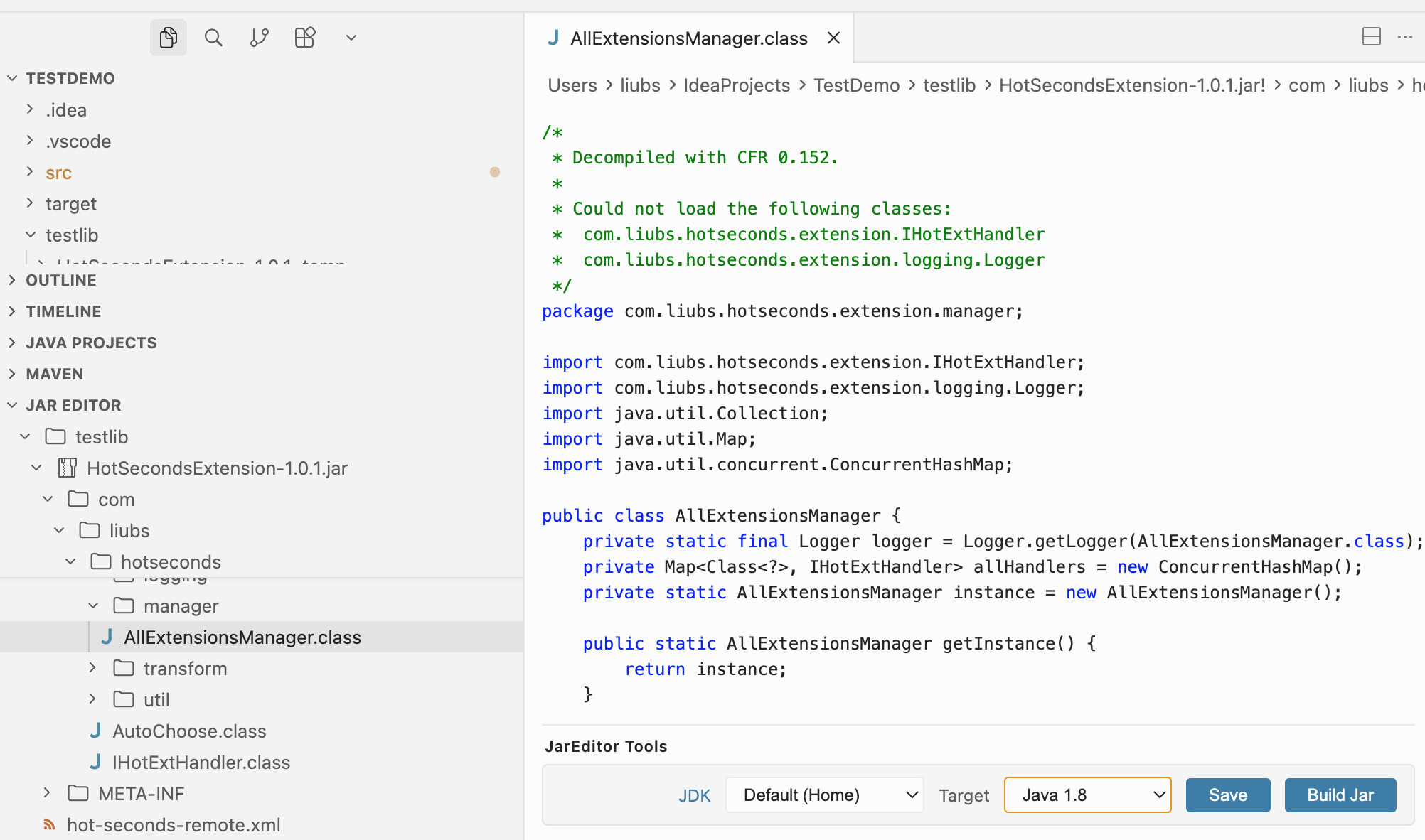 简单来说,JarEditor 可以让你直接在 VS Code 里处理 JAR 文件。